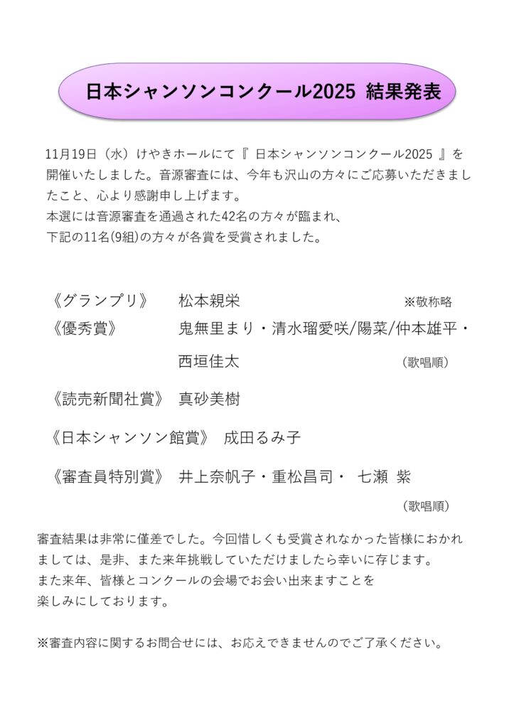 チラシは右『日本シャンソンコンクール2025』バナーをクリック♪